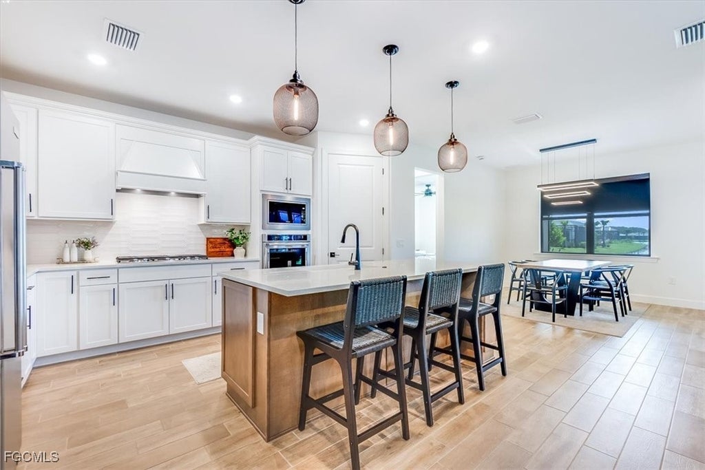 NEW CONSTRUCTION LAKEFRONT WITHOUT THE WAIT! Welcome to the highly sought-after Verdana Village in beautiful Estero, Florida—where luxury, lifestyle, and location come together seamlessly. This brand-new Pulte home features the ever-popular Mystique Floor Plan, thoughtfully designed to offer flexible living spaces and effortless entertaining. Best of all, it’s move-in ready with premium finishes and no builder delay. Perfectly positioned on a premium lakefront lot, this home boasts three spacious bedrooms, a private den, and three full bathrooms, including a separate guest suite with its own en-suite bath. The open-concept layout is filled with natural light and flows effortlessly into an extra-large covered lanai, offering stunning long lake views and plenty of space to add a custom pool—creating the perfect setting for indoor-outdoor Florida living. Inside, you’ll find wood-look tile flooring throughout—with no carpet anywhere—along with a gourmet kitchen equipped with a natural gas cooktop, built-in oven and microwave, quartz countertops, and a walk-in pantry. The laundry room has been upgraded with custom cabinetry and a utility sink, adding both style and function. This home is built for comfort and peace of mind, featuring impact-rated windows, doors, and sliders with privacy tint, as well as designer lighting fixtures and custom window shades by Zingas in every room. A tile roof adds long-term durability and timeless curb appeal. Located in Verdana Village, you’ll enjoy a resort-style lifestyle with world-class amenities including indoor and outdoor pickleball, tennis, and basketball courts, a state-of-the-art fitness center and movement studio, a resort-style pool and spa, and even an on-site restaurant and café. The community also offers social lounges, playgrounds, walking trails, nature preserves, and 24/7 gated security for added peace of mind. Don’t wait months for new construction—this stunning Mystique model is ready now and offers the perfect blend of modern design, functional living, and resort-style amenities in one of Estero’s most vibrant new communities. Schedule your private showing today!
