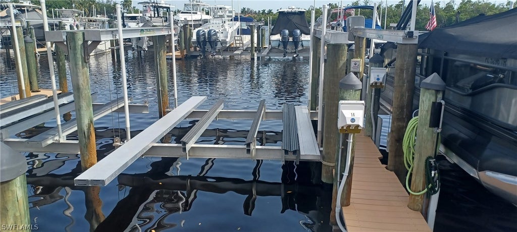 L14623 Wet boat slip with lift, minutes to the Gulf of Mexico via Wiggins Pass or New Pass. This is a 30' boat slip conveniently located next to the marina building and just steps to the parking lot. 10,000 pound boat lift with 2 walkways, new motors and remote controller since Ian. Tired of trailering and fighting the ramps with your boat or jet skis? This is the most convenient way to access the water and use that watercraft on a regular basis. The Hickory Bay Boat Club marina personel are on hand 7 days a week 8-5 for on-site fuel, fish cleaning station, ice, refreshments plus access to 24 hour restrooms with showers. Water & Electric are included as well as service/work area inside the storage building for boat maintenance. HBBC is a non-profit marine facility with low fees, located within walking distance to restaurants and Bonita/Barefoot Beaches. It's a quick ride in marked channels to Wiggins Pass and the Gulf of America (10-15 minutes) or north to New Pass and the islands. HBBC is a marina you can easily reach by car and enjoy for many years at a very reasonable cost. Time on the water is never enough, but at HBBC, it'll be a pleasure to board your vessel and use it on a regular basis!