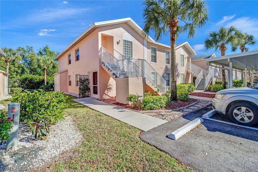Don't miss this opportunity to own in Southwest Florida. This 2 bedroom, 2 bathroom second floor condo in The Manor at Morton Grove in Bonita Springs, FL makes a great first home purchase or investment property. The condo is a split bedroom floorplan and features vaulted ceilings, ceramic tile and luxury vinyl plank flooring throughout. There is newer carpet in the second bedroom. Enjoy the large eat-in kitchen with a plenty of cabinet space, breakfast counter, separate dining area and plenty of windows for natural light. The living area is very spacious and open. The master bedroom is located off of the living room and is complimented by a large walk-in closet and master bathroom with dual sinks and shower. The second bedroom is on the other side of the condo located down the hall where the second full bathroom with tub and shower combo is conveniently located. Watch the birds and get some fresh air on the screened balcony that is accessible from the living room and master bedroom. The washer and dryer are also located on the screened balcony. Flood insurance, water, & sewer, pest control, landscaping, ground maintenance, and irrigation all included with the quarterly condo fee. The Manor at Morton Grove is a 100 unit condominium complex located in Morton Grove that includes a spacious clubhouse, large heated community pool, and 5 acres of community lakes. Strategically located close to Interstate 75 and 3.5 miles from US 41 South Tamiami Trail and 7 miles from the beach! The Bonita Springs YMCA is across the street from Morton Grove and is walking distance. The new mixed use commercial development going in on Bonita Beach Rd just south of the community makes this location a prime area to purchase and live.