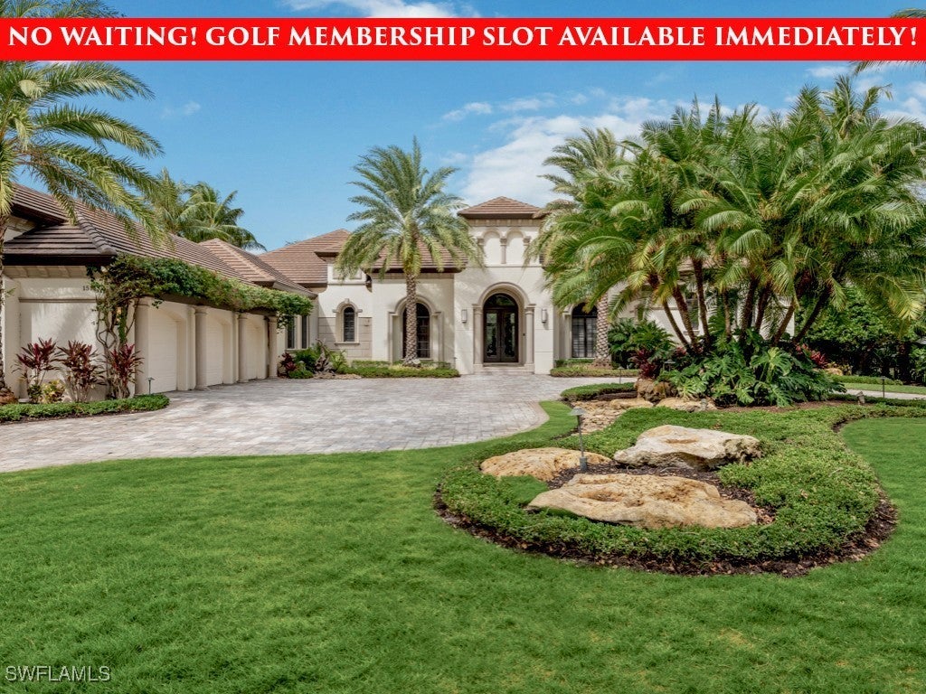 NO WAITING, GOLF MEMBERSHIP SLOT AVAILABLE IMMEDIATELY - NEWLY RENOVATED PRIVATE BEACH CLUB - Nestled within the prestigious golf and country club community of Mediterra in Naples, Florida, this exquisite estate home, crafted by the renowned McGarvey Custom Homes, epitomizes ultra-luxury living. Upon arrival, a private circular driveway leads to a grand foyer entry that sets the tone for the opulence that awaits. With four elegantly appointed bedrooms—including a private cabana perfect for hosting extended guests—this residence offers both comfort and sophistication. Transitioning seamlessly, the formal living and dining rooms exude refinement, while the gourmet chef's kitchen, equipped with professional-grade Wolf appliances, double ovens, and a generous prep island, invites culinary creativity. Furthermore, the expansive family room, framed by towering glass sliding doors, opens to an oversized screened lanai, where outdoor living comes to life with a fully equipped kitchen, ample seating, and a stunning tropical lagoon-inspired pool and spa, complete with a lively rock waterfall and serene lake views. The primary suite serves as a personal retreat, boasting a spacious seating area, direct access to the lanai, and a spa-inspired bath designed for relaxation with its walk-in shower, dual vanities, and independent soaking tub. Additionally, the home features a convenient air-conditioned 3-car garage and a reliable home generator, ensuring that luxury meets practicality at every turn. Mediterra is a prestigious luxury golf & country club community featuring Two championship Tom-Fazio golf courses for avid golfers, multiple tennis courts, pickle-ball & bocce, fitness center, pristine bike & jogging trails, and luxurious dining at the private country club restaurant. The Mediterra Beach Club offers an escape to a 10,000 sq. ft two-story private oceanfront paradise on the Gulf of Mexico. Featuring a restaurant & bar that serves members via indoor & outdoor dining, this private facility boasts a heated swimming pool, a sundeck, and cabana beach service for chairs, umbrellas & refreshments.