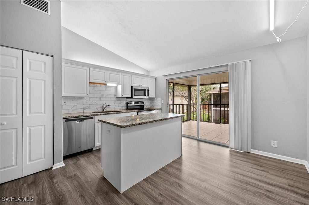 Upgraded 2-bed, 2-bath End Unit condo in Sun Catcher. Fully renovated kitchen featuring stainless steel-finished appliances, a deep sink, sleek white cabinetry, stylish backsplash, dark stone countertops, perfect for cooking and entertaining all complemented by a vaulted ceiling. Full-time residence or investment opportunity, Throughout the living areas, rich wood-style flooring enhances the warmth and elegance of the space. The generous-sized bedrooms enjoy their own bathroom—both of which have been tastefully updated. Relax and unwind on the spacious oversized screened lanai, a serene retreat for enjoying the Florida breeze. Additional upgrades include an in-unit washer and dryer and plenty of storage throughout. Amenities include a community pool. This home is just minutes from shopping, dining, and the breathtaking Gulf beaches. With its prime location and modern updates, this condo is a must-see.