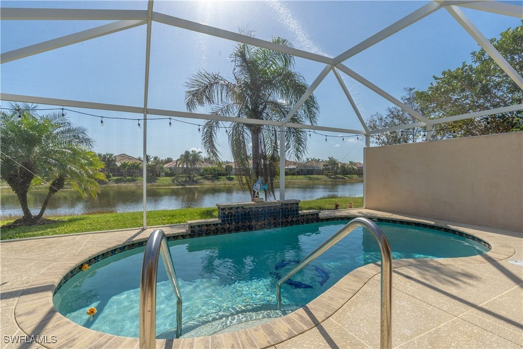 JUST REDUCED! ON ONE OF THE NEWER CARINGTONS ON THE MARKET. WHAT A DEAL WITH this unique, wheelchair accessible( IF NEEDED) three bedroom/two bath, attached Carrington villa located in the gated community of VeronaWalk. Equipped with wider doors & rollover thresholds, this stylish contemporary home has vaulted ceilings, soothing coastal paint shades and neutral tile for varied decorating preferences. Open concept living is evident upon entering with tile floors adding a connected flow throughout the entire home. A centrally located kitchen has plentiful cabinetry, prep space and a breakfast bar for additional seating. The large primary bedroom looks out onto your pool area for a peaceful view upon waking. Your ensuite bath houses a dual sink vanity, the master bathroom has a tiled, barrier-free, roll-in shower, complete with grab bars. From here is access to a large walk-in closet. The third, tiled bedroom can be used as an office, cozy den or additional guest quarters. Outdoors is your private oasis with a covered lanai extending into a screen enclosed patio with custom pool. A gentle waterfall into the pool matches the quiet waterway behind the home. VeronaWalk is just a short drive from downtown Naples restaurants and shoppes or the quaint charm of Marco Island. This lovely home is move in ready and awaiting you.