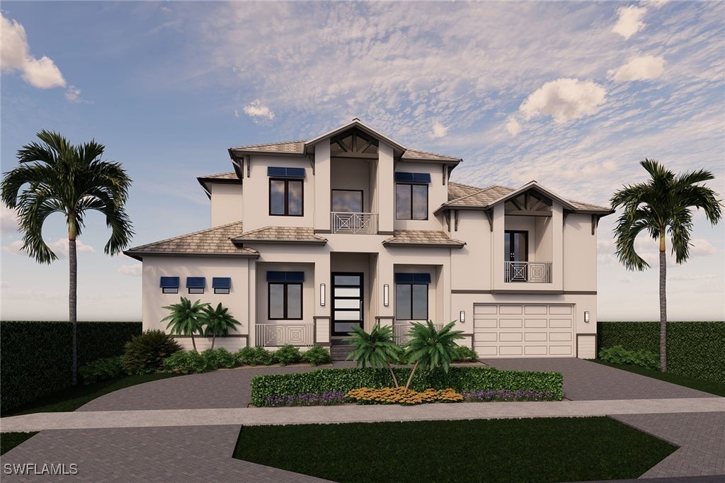 Beautiful Divco-built home to be completed in the summer of 2026. Two stories, five bedrooms plus a study, 5.5 baths and a loft. The state-of-the-art kitchen features Thermador appliances, Quantum quartz countertops and a wet bar. The great room includes a gas fireplace and a Sonos home theatre system. Wide water views from your lanai as well as an outdoor kitchen, enlarged negative edge pool with a sun shelf and fire water bowls. Also included is an elevator to make getting to the 2nd floor a breeze. There is still time to make major changes if desired. Please see the attached list of all the outstanding features of this remarkable home. MLS photo is virtually rendered.