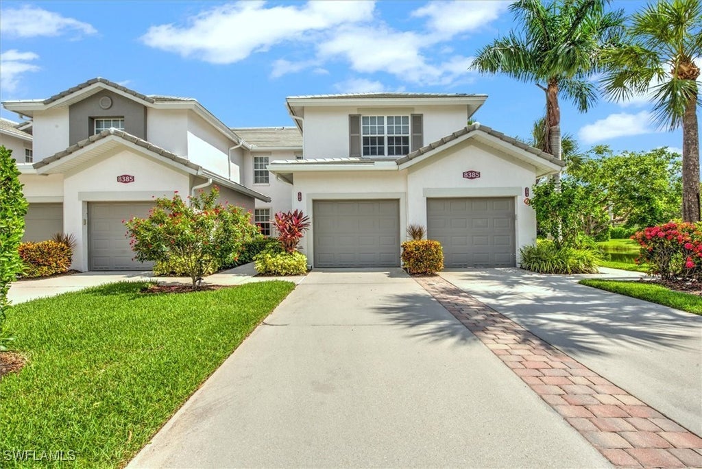Beautiful, Corner Unit on Serene Pond with Screened Lanai and attached one-car garage. This freshly painted, light and bright unit features 2 bedrooms and 2 bathrooms plus den; newer quartz counters, freshly painted cupboards, new microwave in open kitchen; beautiful new chandelier in dining room; new LV floors in bedroom areas and tile in living areas; new counters and new lighting in both bathrooms; brand-new LC washer and dryer in laundry room. Great, friendly, small community with pool. Whisper Trace is located in Fiddler's Creek, a 5+ amenities rich membership community with 2 pools, 2 restaurants, state-of-the-art gym, tennis courts, pickleball courts, classes, events and more! Golf Club membership is additional. Start living the Fiddler's Creek Lifestyle as an end user or investment opportunity.