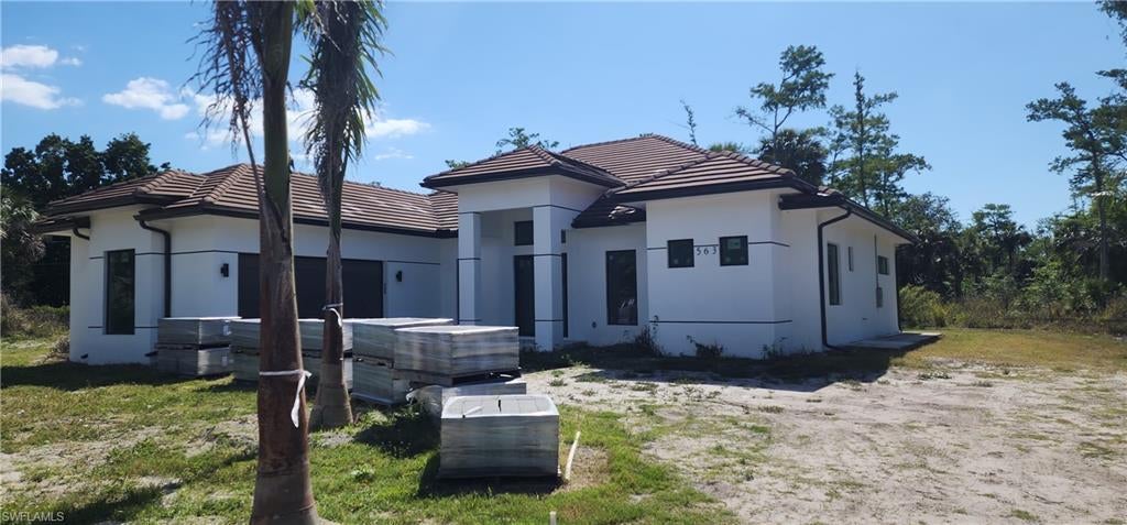 Beautiful and spacious single-family home under construction in central 2.5-acre lot. Open concept with quartz countertops all around home. 4 bedrooms plus den and 3 full bathrooms. Double car garage. This home will have brick paved driveway, screened in lanai, pool with integrated spa and cookout area/gazebo. Located off Golden Gate Boulevard and minutes away from all the up-and-coming shops in the Estates.
