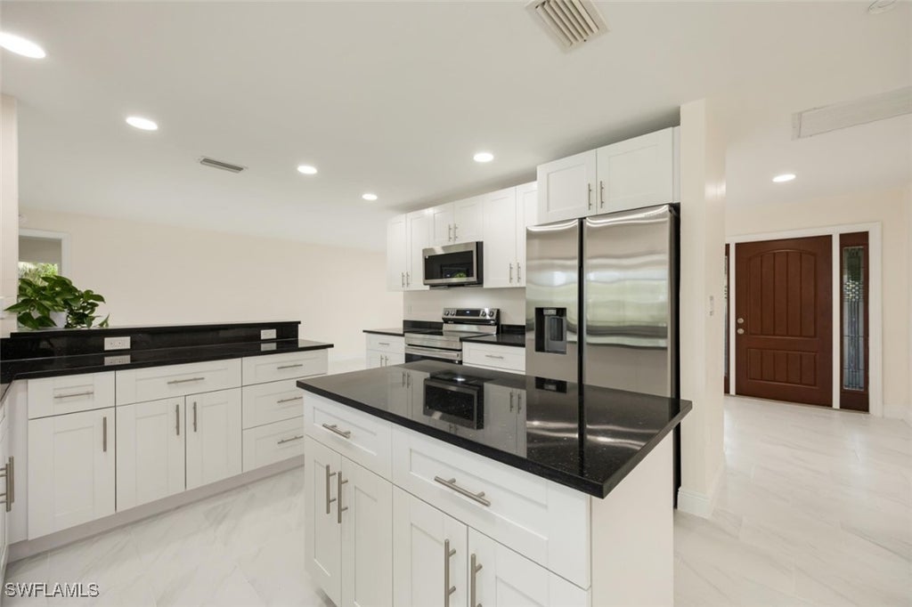 Brand NEW ROOF with 50-yr warranty shingles just installed in September, and NO price increase! So centrally located near everything Naples has to offer! Hop on your boat from your backyard to the Gulf via the wide-open legendary Gordon River! The all-new bright OPEN kitchen has gorgeous views across your sparkling new pool to the canal, and features granite counters, new white shaker cabinetry and new stainless Samsung appliances. This floorplan offers tremendous flexibility to suit your lifestyle including a large primary suite with new bathroom and oversized walk-in closet with wood built-ins, and boasts its own den/office or exercise area and lanai access. Plenty of room for family here with 2 large guest bedrooms and a newly renovated guest bath with linen closet, enclosed by its own pocket door for guests' privacy, and nicely separated on the other side of the house from the primary suite. All beautiful new designer tile flooring throughout the home! The pool was completely redone with all new concrete/tile in 2022; the lanai was rescreened in 2019. AC is 2022 (compressor and ductwork) and 2019 (air handler). The systems in this home are essentially new including 2024 water heater, home completely re-piped (2023), electrical panel 2024, new driveway 2022, and new fans and LED lighting. Home priced to sell almost $200K below attached April 2025 appraisal! Feb. 2025 4-point inspection done for you and attached, although completed prior to new roof. Coconut River Estates has no rental restrictions and is one of Naples' best-kept secrets, and is 10-12 minutes from beautiful beaches, renowned 5th Ave./3rd St. or Mercato or Waterside shopping and dining, or 5 minutes from scenic Naples Greenway biking/hiking! There are more and more Coconut River Estates homes valued well over $1-$2 million. VOLUNTARY HOA fee of $450/year is optional, and the amenities and activities are amazing, including a large heated pool, 4 pickleball courts, tennis, shuffleboard, basketball, clubhouse, playground, community boat dock, dog park, storage for boat trailers or kayaks/canoes, and activities such as tennis lessons, concerts and a family-friendly holiday parade! Note, many other homes in Coconut River do NOT offer boat access from your lot to the Gulf. So come make this YOUR new slice of PARADISE!