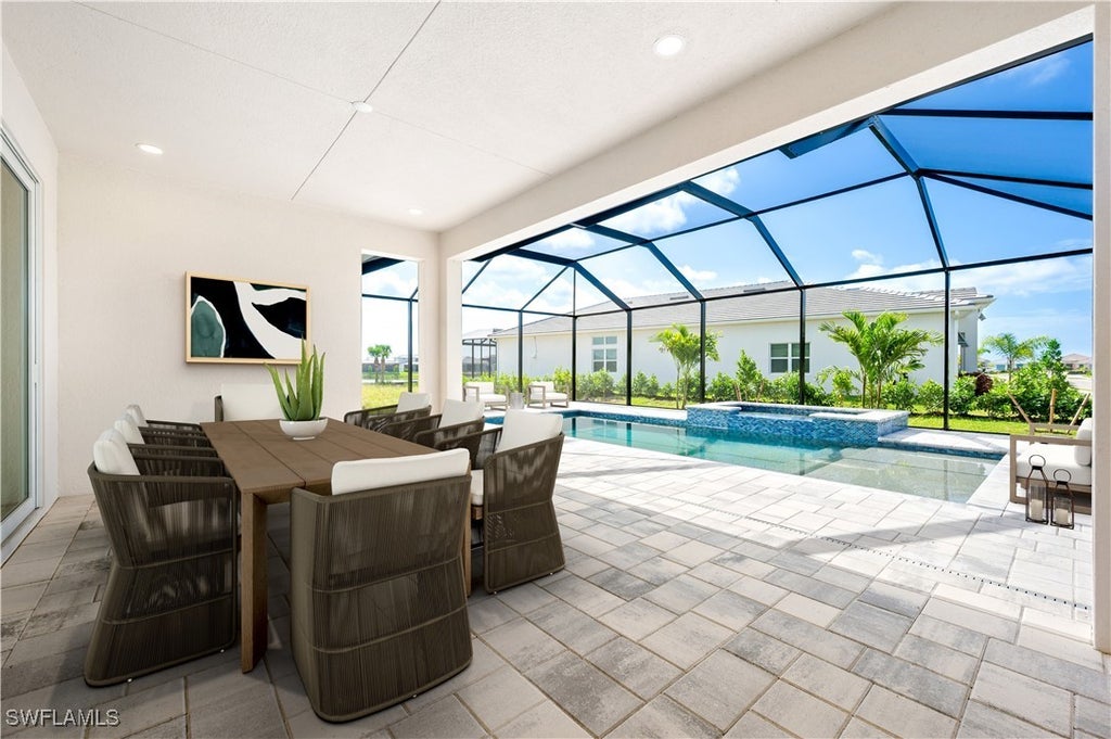 Welcome to the epitome of Florida living in this beautifully appointed Montura Transitional home, perfectly situated on a desirable corner homesite with coveted southern rear exposure—ideal for soaking up the sun all day long. Enjoy your own private outdoor oasis, featuring a sparkling pool and spa, complemented by an extended covered lanai already equipped with plumbing and gas lines for a future outdoor kitchen—perfect for effortless alfresco entertaining. Step inside and be greeted by a grand foyer with an elegant tray ceiling that sets the tone for the refined details found throughout. This thoughtfully designed home offers over 2,400 square feet of elevated living space, boasting spacious bedrooms, luxurious baths, and a versatile flex room ideal for a home office, gym, or hobby space. The open-concept great room flows seamlessly into a light-filled casual dining area and a chef-inspired kitchen, complete with a generous island, walk-in pantry, and abundant cabinetry—perfectly positioned at the heart of the home for everyday living and entertaining. High-end finishes elevate every corner, including striking cool-tone plank flooring and designer tray ceilings in key living spaces like the foyer, great room, and the serene primary suite. Additional features include over 100 square feet of garage storage, impact-resistant windows and doors for peace of mind, and a location in a natural gas community offering resort-style amenities—all just minutes from the world-class beaches, dining, and shopping of Marco Island and Downtown Naples. Please see MLS supplements for interior design selections and floor plan layout. Home Site 117. Ask your sales consultant about our exclusive rate buydown program and how it can help lower your monthly payments!