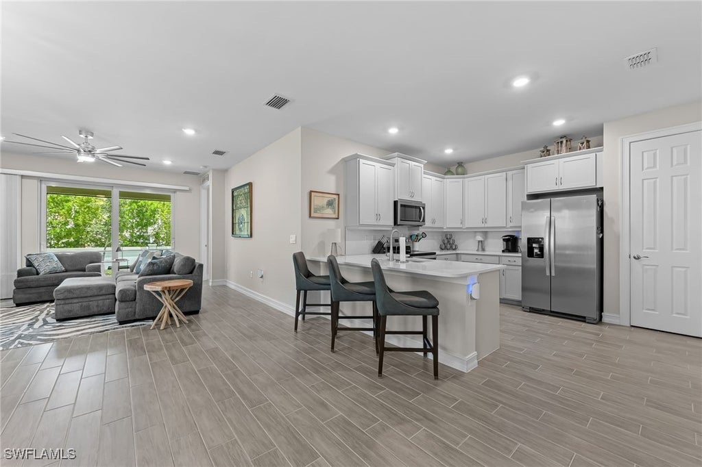 Welcome to this stunning Carrington model villa in the sought-after Enbrook community. This home offers a perfect blend of modern style and comfortable living, starting with its inviting open-concept floor plan. The gourmet kitchen is a chef's delight, featuring custom-designed cabinetry, solid-surface countertops, and a breakfast bar perfect for casual dining. This desirable villa boasts two bedrooms, a spacious den, two full bathrooms, and a two-car garage. The den is versatile enough to serve as a second living room or home office. Step out to the screened-in lanai to relax and enjoy the beautiful Florida weather. The home has been thoughtfully upgraded with an array of premium features, including plantation shutters, updated light fixtures, and ceiling fans throughout. You'll find custom closets for optimal storage and organization, as well as upgraded flooring and impact-resistant windows for peace of mind. Enbrook provides a resort-style lifestyle with its fantastic amenities, including a clubhouse with a large social room, a catering kitchen, a fitness center, a sparkling resort-style pool, and courts for tennis, bocce, and pickleball. With low HOA fees and a prime location, this villa is an excellent value. Situated just a short drive from downtown 5th Avenue, Marco Island, and pristine Gulf beaches, this home offers the best of Southwest Florida living. Don't miss your chance to own this exceptional property. Schedule your showing today!