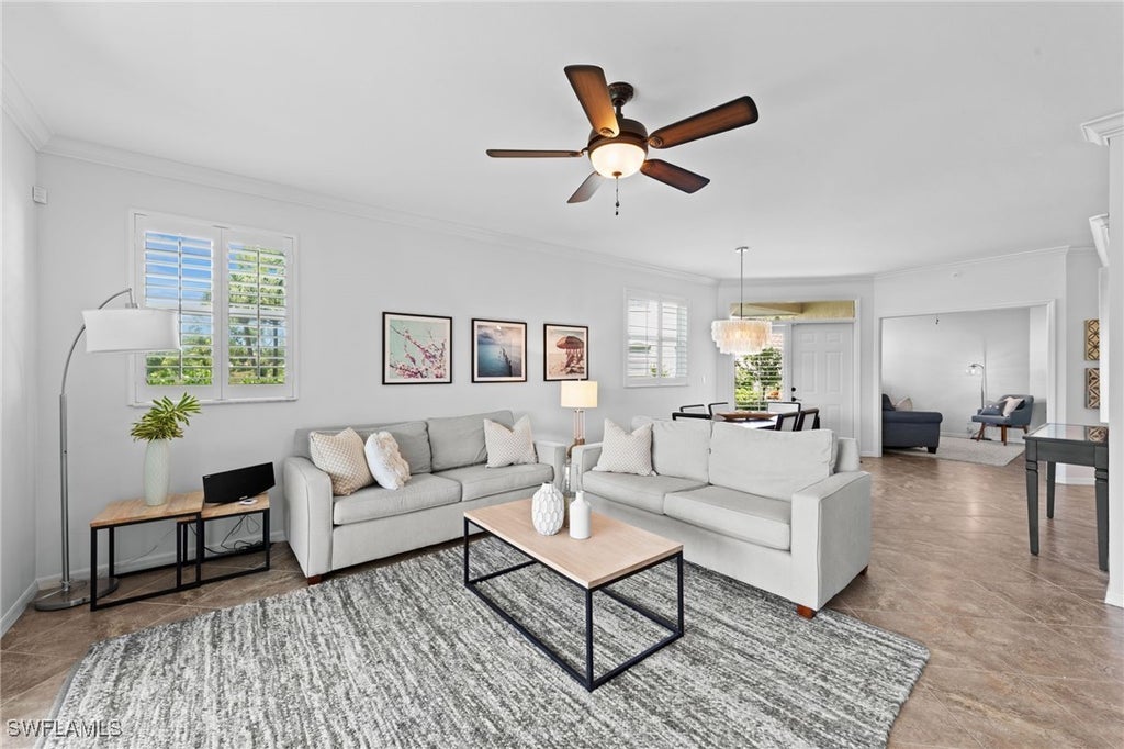 Your Turnkey Naples Luxury Lifestyle Awaits—Full Golf Membership Included! Step immediately into the coveted Glen Eagle lifestyle. This is more than a home; it's your instant entry into Southwest Florida's most desirable golf community. Forget waiting lists and application fees—a FULL GOLF MEMBERSHIP is included, offering immediate access to the par-70 championship course. Unparalleled Views and Peace of Mind. This exceptionally maintained, move-in-ready, first-floor end unit is a sanctuary of light and privacy, boasting extra windows and the community's most desirable panorama. Imagine unwinding on your screened lanai with expansive, serene 180-degree sunset views that stretch unobstructed across the Glen Eagle Golf Course. Enjoy absolute peace of mind with full impact glass throughout* and electric shutters on the lanai. Effortlessly protect your home and leave your outdoor furniture in place all year long—a convenience only truly appreciated here in Florida. Exquisite Finishes and Essential Updates Offered Turnkey furnished, simply bring your suitcase and start living your dream. The kitchen is a chef's delight, featuring sleek granite counters and top-tier Samsung and Bosch stainless steel appliances. Stylish plantation shutters and crown molding complement a suite of essential, newer mechanicals (A/C 2021, Hot Water Heater 2018, Garage door 2024), ensuring worry-free living from day one. Every Day is a Vacation. As an owner, you gain full access to a host of world-class amenities. Sharpen your game on the championship 18-hole golf course, gather with neighbors on the pickleball, tennis, and bocce courts, or work out in the modern fitness center. Your social life awaits at the Clubhouse, which features fine dining at the main Restaurant, a full-service bar, and the popular "Divot Café" for casual bites. Plus, modern convenience is assured with Fiber internet and basic cable included. Glen Eagle is a private gated community nestled in the Heart of Naples, located just minutes from the vibrant energy of Downtown Naples' fine dining, designer shopping, and the area's pristine Gulf beaches. Your immediate luxury golf lifestyle is here. Don't let this opportunity pass you by.